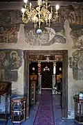 La iglesia es notable por sus frescos, contemporáneos a la construcción de la iglesia, que cubren casi toda la superficie interior. Son un ejemplo de la escuela tesalónica en el apogeo del "Renacimiento Palaiologico", y su creador puede ser el mismo que decoró el monasterio de Hilandar en el Monte Athos en 1314. La iglesia ha sido vinculada al rey serbio Esteban Uroš II Milutin (r. 1282-1321), quien es conocido por haber patrocinado iglesias en la ciudad, debido a la representación en la nave principal de San Jorge Gorgos, el santo patrono del gobernante serbio, y de San Clemente de Ohrid, un motivo favorito de las iglesias serbias.[1][3]