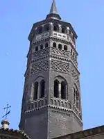 Muy notoria es la torre mudéjar de planta octogonal, que constituye uno de los mejores ejemplos de torre mudéjar de la ciudad. Su interior alberga dos cuerpos concéntricos entre los que se sitúa una escalera y permite ver una panorámica de Zaragoza.