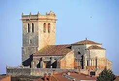 - Primera etapa: Entre 1210 y 1225 que se corresponde con la construcción de la zona inferior del ábside, la portada primitiva, una ventana y restos de columnas y arcos en el interior. El ábside constituye sin duda el elemento más destacado del conjunto. Consta de un tramo recto y otro semicircular, dividido en tres paños mediante dos estribos, con aristas cortadas por gruesos boceles a modo de columnitas. En vertical, el ábside se divide en dos cuerpos decorados, separados por imposta moldurada con igual número de arcos en los dos cuerpos, siendo los del cuerpo superior más esbeltos y trilobulados de factura netamente gótica, apoyados en zócalo y rematados por un cuerpo liso. La portada primitiva se abre al recinto del cementerio anejo, responde a la última fase del románico, decorada con profusa decoración geométrica y vegetal muy relacionada estilística y técnicamente con la escultura del claustro superior del Monasterio de Silos. De esta época es la ventanita cegada que se puede contemplar desde el recinto del cementerio.