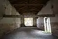 La cabecera, hoy abierta por dos arcos de medio punto con impostas, estuvo unida a unos compartimentos laterales desaparecidos.