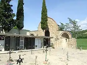 Sería una magnífica iglesia de, al menos, tres naves con tres ábsides. Actualmente solo queda el ábside central, aprovechado como capilla del cementerio. Conserva, sin embargo, una parte de la decoración escultórica que la adornaba.