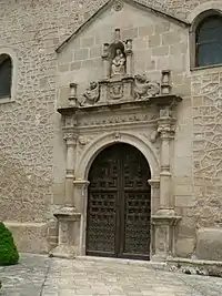 La capilla mayor se cubre con una cúpula de media naranja sobre pechinas rematada con una linterna. El coro se sitúa a los pies apoyado sobre un arco rebajado. En el lado del evangelio, se sitúa la capilla de la Virgen del Peral. Es de planta cuadrada y se cubre con una cúpula de decoración barroca. En el lado de la epístola, sobre el muro izquierdo del acceso principal, se encuentran sepulcros del siglo XVI. El primero por arriba cuenta con gran concha y dos niños que sujetan una inscripción. A continuación, tres sepulcros de mármol con esculturas de mujer de perfil y otra de monje yacente, de frente, con las manos unidas.[1]
