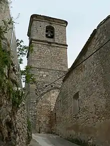 Es de planta basilical con muros de mampostería, sillarejo y sillares en basas y esquinas. El acceso principal se realiza en el lado de la epístola, a través de un amplio atrio descubierto, cerrado mediante una barbacana de sillarejo rematada con grandes bolas. La portada, de estilo plateresco, se habría edificado a mediados del siglo XVI. Es de cuidada talla, con adornos vegetales, medallones y bichas, entre otros. Consta de un arco de medio punto apoyado sobre pilastras cajeadas, enmarcado a su vez por un entablamento que apoya en columnas abalaustradas, con friso decorado con querubines y representaciones en las enjutas de san Pedro y san Pablo. El conjunto se remata con una hornacina avenerada en la que se sitúan una representación de la Virgen con el Niño. Bichas flanquean la hornacina y todo el conjunto entre columnas con flameros. La torre se sitúa en el lado del evangelio. Es de tres tramos edificados de mampostería y sillarejo, con sillares en las esquinas.[1]