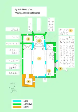 ![]() Aprox. a la planta de la iglesia. Signos lapidarios |
