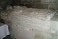 Tras el altar, la imagen de San Pedro, obra moderna, de 1901, realizada por el escultor Font. El espacio acoge cuatro sepulcros. En el lado izquierdo del presbiterio, abriendo vano con la capilla de San Isidro y bajo arcosolio escarzano con trasdós apuntado que corona cinco escudos nobiliarios policromados, se sitúa el sepulcro de Don Pedro Martínez de Álava, con bulto yacente finamente trabajado en bronce, de la primera mitad del XVI. A su lado, en el ochavo contiguo del ábside, el sepulcro de su hijo Don Diego de Álava y Esquivel, obispo de Astorga, Ávila y Córdoba, asistente al Concilio de Trento y muerto en 1562. En el ochavo de su frente, en el lado derecho del ábside, sepulcro con bulto orante en bronce de finales del XVI de Juan Ruiz de Vergara, diputado general de Álava en 1585. A su lado, en el presbiterio, bajo otro arcosolio que abre vano con la capilla de Nuestra Señora de Gracia, el sepulcro yacente de Don Diego Martínez de Álava, fechable en los últimos años del siglo XIV.