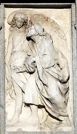 En la segunda pilastra del lado de la epístola, lápida conmemorativa de 1683 en mármol, con inscripción incisa en capitales latinas.