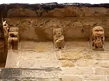 Los 37 canecillos de debajo de alero se dividen en tres grupos diferenciados. En el primero, que va desde el existente en el contrafuerte del lado de la Epístola contiguo al ábside, hasta el 15, se representa una simbología numérica celestial o positiva.