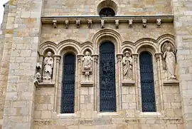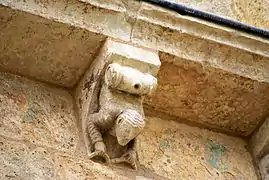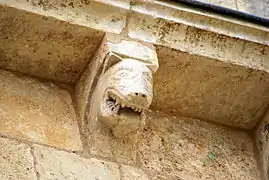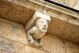 Entre el óculo y el triplete hay una cornisa sostenida por nueve ménsulas, siete de las cuales están labradas. La calidad de las esculturas no deja dudas sobre el taller que las realizó. Basta hacer la comparación con los modillones aún en pie en la abadía de La Sauve. Está claro que los modelos románicos continuaron siendo imitados tarde y en medio del movimiento gótico.