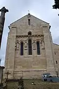 El muestrario iconográfico de la iglesia es la cabecera, diseñada a modo de fachada y enmarcada por dos potentes contrafuertes, bien visibles desde la abadía. Según los historiadores, el ábside se completó antes de 1231.