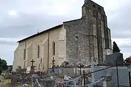 La iglesia primitiva constaba de una nave única rectangular con cabecera plana timbrada con tres ventanas paralelas llamadas 'tripletes'. Tenía la silueta austera que caracterizaba a las iglesias templarias de la Gironda. Hacia 1524, se añadió una nave lateral al norte de la nave. Del edificio original sólo queda, al sur, un tramo de muralla de pequeña fábrica, separado por niveles de sillería.