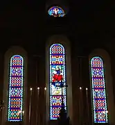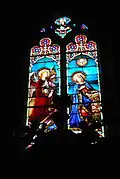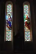 - Sobre el altar de la Virgen las vidrieras representan la Anunciación, a la izquierda el ángel Gabriel ya la derecha María.