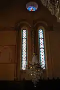La iluminación de la nave está asegurada por el triplete y superior, por un óculo y una estrecha ventana en el eje del ábside.
