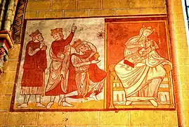 - En el muro norte del ábside, la pintura representa la Adoración de los Reyes Magos.