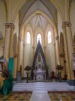 El templo posee un bellísimo altar de mármol gris, de forma triangular y estilo moderno que, desafortunadamente, no armoniza muy bien con el resto de la construcción. Fue traído de Italia por Monseñor Miguel Ángel Builes con destino a la Basílica de nuestra señora de las Misericordias de Santa Rosa de Osos y cedido poco después a la Parroquia de Betania.