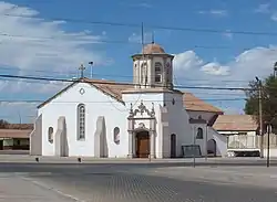 La iglesia, que fue uno de los primeros edificios iniciados en la oficina, comenzó su construcción en 1926. En un comienzo se planeó como una iglesia anglicana, pero como no había creyentes de esa religión, fue entregada para el culto católico. El 1 de mayo de 1927 fue dedicada por Luis Silva Lezaeta.[3]