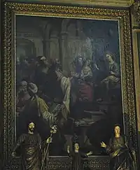 - There are seven paintings, two of which are attributed to Bento Coelho da Silveira(ca. 1630-1708): The Naming of Jesus (Circumcision), The Adoration of the Shepherds, The Annunciation, Calvary, The Resurrection, Pentecost, and The Assumption of Mary. See José Alberto Seabra Cavalho, Sete Imagens para o Calendário Litúrgico. As pinturas do altar-mor da Igreja de São Roque / Seven Pictures for the Liturgical Calendar. The Church of S. Roque main chapel tribune paintings (Lisbon, 2006), pp. 7-55. See also Caetano, Pintura, nos. 29-33, 132-133 (vol. 1: 50-53, 130-131).