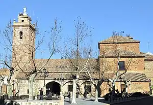 Precede su entrada principal la plaza del Álamo y curiosamente ninguna de las dos puertas de acceso al templo se sitúan frente al altar mayor. De estilo mudéjar, cuenta con una superficie total de 422 m² y tiene forma de cruz latina, compuesta de dos brazos uno longitudinal más alargado y otro más corto transversal.