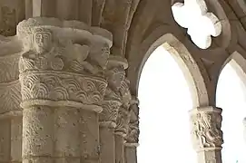 Al mismo tiempo, en el interior del pórtico los contrafuertes están decorados por pilastras con capiteles ricamente decorados con diversos motivos tanto vegetales como animales y humanos. Así mismo, las ménsulas de los arcos ojivales que sustentan el interior del pórtico muestran «pavorosos monstruos».[3]