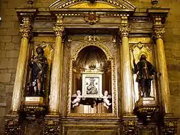 El mobiliario interior consiste en cinco retablos de madera dorada que, pese a su vistosidad, presentan un valor artístico escaso por tratarse de obras modernas. El Retablo Mayor fue diseñado por el arquitecto Juan Blas de Hormaeche, quien adoptó un estilo neoclásico-isabelino, a caballo entre el barroco y el neoclásico del siglo XVIII. El mueble, con cuerpo de tres calles y ático, en planta mixitilínea, fue realizado entre 1860 y 1864 por el escultor bilbaíno Bernabé de Garamendi. Dividido en dos cuerpos, alberga una imagen barroca de la Inmaculada (siglo XVIII) y una talla del titular del templo realizada por el propio Garamendi. El dorado lo aplicó Isidoro Sanz.