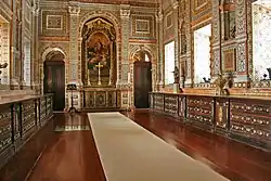 Diseñado por el arquitecto Italiano Filippo Terzi y el español Juan de Herrera fue terminado en 1627, la iglesia presenta una fachada monumental, sobria y simétrica, con torres a cada lado y las estatuas de los santos Agustín, Sebastián y Vicente sobre la entrada. Dentro, sobresale el baldaquino barroco de Machado de Castro, por encima del altar, flanqueado por estatuas de madera de tamaño natural.