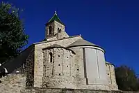 La iglesia románica tiene planta basilical con tres naves paralelas sin transepto. Están cubiertas con bóvedas de cañón la central y la meridional, mientras que la del norte tiene en su primer tramo una bóveda de arista. Las naves tienen en su cabecera tres ábsides semicirculares, el central reconstruido en 1983.