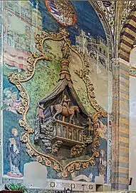 Al lado izquierdo de la fachada, sobre el arco de entrada de un patio, se encuentra el sarcófago de Guglielmo de Catelbarco. Es el primer ejemplo de arca de tipología “dosel” que luego será utilizada para los sarcófagos de los miembros de la familia “della scala” que gobernó la ciudad de Verona entre 1262 y 1387.