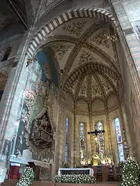 Posee unos frescos votivos de Stefano da Zevio del siglo XV en el lateral izquierdo, mientras que a la derecha se encuentran frescos de Boninsegna Bonaventura y otros de Giovanni Badile.