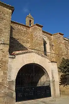Está datada la actual iglesia de finales del siglo XV, aunque seguramente se reconstruyó sobre otra más antigua, cuando con fecha del 11 de agosto de 1371 la población obtuvo el título de villa gracias a un privilegio del rey Enrique II de Castilla.[6] El interior consta de una sola nave, con arcos de diafragma que la dividen en cuatro tramos, la cabecera de la iglesia se encuentra ocupada por la capilla mayor de planta cuadrada y con bóveda de crucería estrellada. Presenta en el exterior una portada de arco de medio punto con columnas clasicistas de fuste liso en ambos lados que terminan en candeleros. Sobre la puerta se encuentra una ventana por la que entra la ilumación interior al coro y adorna la fachada diversos esgrafiados de traza geométrica. Tiene una torre de dos cuerpos realizada en mampostería al lado de la Epístola, realizada en 1603 y que se encuentra sobre la capilla bautismal.[7]