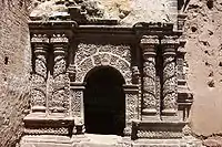 Las ruinas denotan la grandiosidad que tuvo en su época la iglesia. Se destacan los finos trabajos de escultura en piedra. Lo que hoy queda, en estado de ruina, muestra el magnífico remplo dieciochesco levantado sobre la estructura original. Se han respetado partes de la misma y se ha conservado en su integridad la portada renacentista de pies, que es idéntica a la de la Asunción, con simples pilastras pareadas entre las cuales se ha colocado un círculo son el símbolo de los jesuitas, quienes levantaron una nueva portada barroca sin tocar la existente, objetivo que consiguieron al adoptar la solución compositiva de triple columna que les permitía tapar las pilastras renacentistas.[3]