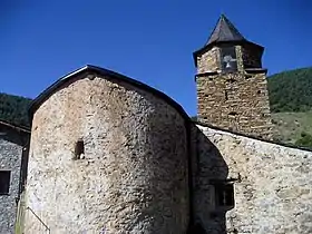 Construcción del siglo XI, su planta consta de una sola nave rectangular con techumbre de madera y cubierta exterior de pizarra, con un ábside de bóveda de cuarto de esfera. Su campanario de planta cuadrada es de tres pisos, en este último se convierte en octogonal con cuatro oberturas.