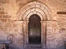 Es una iglesia de pequeño tamaño, una sola nave y rematada en ábside semicircular. La puerta de acceso se encuentra en el muro occidental, bajo la espadaña. Está enmarcada por tres fustes monolíticos que abocinan la puerta. Sobre ellos hay toscos capiteles con motivos geométricos e iconográficos, así como cinco arcos ligeramente apuntados. La puerta sobresale un tanto respecto al lienzo del muro y está cubierta por un tejadillo con cornisa a la que sostienen canecillos. Hay una puerta más sencilla, también con arco apuntado, en la fachada meridional.