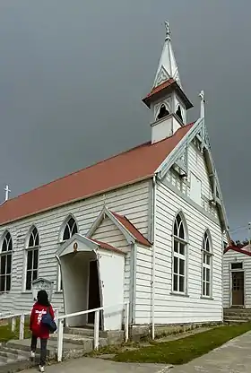 Es la única iglesia católica del archipiélago, está hecha de madera y fue bendecida en 1899. En la pared oeste cuenta con murales al óleo ilustrados por el artista argentino James Peck, nacido en las islas.[4]