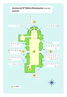 La iglesia de Santa María Magdalena es un templo románico ubicado en la ciudad de Zamora (España).[2] Al eje principal del templo, corre paralela una cercana calle medieval denominada Rúa de los Francos. Su construcción se hizo entre los siglos XII y XIII.[3] La iglesia parece haberse edificado en dos periodos: el primero de influencia románica; el segundo en el gótico. Se sabe que en periodos medievales hizo de hospital perteneciente a la Orden de San Juan. Es de las pocas iglesias zamoranas que poseen una única nave muy elevada con planta rectangular (planta basilical). Destaca de esta iglesia la portada de su fachada meridional. Fue declarada Monumento Nacional en 1910.[4]