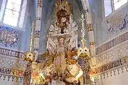 En el ábside hay un retablo modernista de Josep Maria Jujol. Jujol hizo el retablo por encargo del párroco Francisco Camino, ya que la iglesia había perdido sus obras durante la Guerra Civil española. Es un retablo de alabastro que se adapta perfectamente al marco gótico que la rodea. Entre 1942-1943 se hizo la mesa y el basamento del retablo hasta el pedestal de las imágenes. Entre 1944-1945 se hizo la imagen central (una Virgen de José Arana Esteban), los ángeles, la Santísima Trinidad y todas las ornamentaciones.[2]