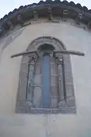 La iglesia presenta una única nave de forma rectangular con ábside semicircular que posee una pequeña ventana.