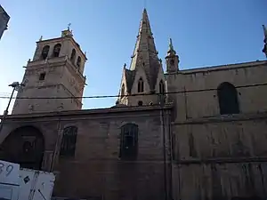 La parte más antigua del templo son los tres últimos tramos de la iglesia, construidos en estilo gótico en el siglo XIII. Entre los siglos XV y XVI fueron reconstruidos el crucero y la cabecera con pilastras fasciculadas y arcos apuntados que sostienen bóvedas de crucería y de terceletes. Finalmente, en el siglo XVIII se realizó una reforma con objeto de reforzar los elementos estructurados del interior para que el edificio pudiera soportar el empuje de la aguja piramidal del exterior, realizada en estilo barroco.