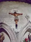 La aguja es el elemento más representativo de la iglesia. Fue construida en el siglo XIII. La forma una linterna octogonal sobre trompas que sirven como soporte a una estilizada flecha de ocho caras en forma de pirámide y dividida en varias zonas por una serie de frisos e impostas. La parte inferior presenta en sus ocho caras cuerpos salientes en forma de buhardillas y en los que se abren ventantas de forma apuntada. A destacar las aristas exteriores con una decoración formada por crestas de crochetes y pináculos.[2]