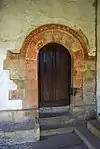 Las tres puertas de la nave y cuatro de las ventanas de los muros Sur y Norte pertenecen a la factura original del templo románico. Las puertas poseen un guardapolvo o moldura, con dibujos de medio punto enfilados y un ajedrezado. Sobre la portada principal hay una cruz griega labrada en un sillar. Las otras dos puertas son más pequeñas. Una se sitúa en el muro meridional, bajo el pórtico, y la otra se abre en el septentrional y fue creada para dar acceso al cementerio; en la actualidad da acceso a la capilla del siglo XIX.