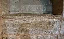 En el suelo de la capilla hay tres laudas con escudos heráldicos labrados, muy desgastados.