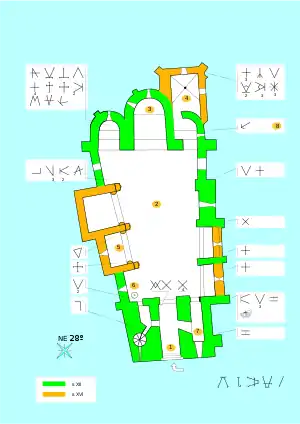 - Catálogo de tipos de marcas de cantería en la Iglesia de Santa María La Real. Ver Planta (8).