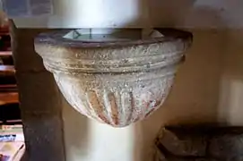 El ábside, que sustituyó al original en la reforma llevada a cabo a mediados del siglo XIX, es rectangular y de grandes proporciones, y se abre a la nave en un amplio arco sobre columnas cuyo capitel forman dos molduras torales con escocia intermedia. De la primitiva capilla central quedan restos de la arquería ciega en los muros.