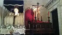 El altar cuenta con un baldaquino obra del jerezano José Gallegos Arnosa por encargo de Guillermo Garvey Capdepón a principio del siglo XX.[6]