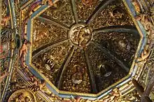 La decoración es del siglo XVII. En cuanto la autoría, posiblemente se encuentre en un entorno de la oleada de estuquistas y pintores italianos venidos a España para la realización de El Escorial. La decoración se desarrolla en torno a temas geométricos, formas acupaladas, veneras, el sol y la luna, las inscripciones de Ave María y Jesús y heráldicas. La capilla bautismal es del siglo XV y es el segundo lugar más importante del templo.