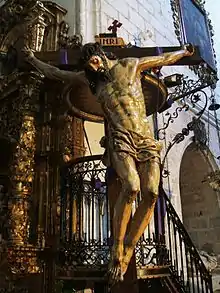 Las figuras de los ladrones son reproducciones de los del pasó de La Sexta Angustia, que se encuentra en el Museo Nacional de Escultura. Cabe señalar que el Buen Ladrón lleva el rostro del Duque de Lerma porque éste le adeudaba al artista una suma por su trabajo en el retablo de la Colegiata de Lerma. Las tres esculturas forman un paso procesional de la Semana Santa vallisoletana conocido como En tus manos encomiendo mi Espíritu, que representa la séptima palabra, perteneciente a la Cofradía de las Siete Palabras, que preside el Sermón de las Siete Palabras en la Plaza Mayor en la mañana de Viernes Santo.