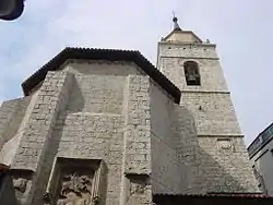 La obra se contrató con el arquitecto guipuzcoano Juan de Arandia, quien desde 1499 había dirigido la construcción de la Iglesia del monasterio de San Benito el Real. Concluida la cabecera en 1500, cuatro años después, Juan de Arandia y García de Olave comenzaron a levantar, adosada al ábside, la torre de sección cuadrada, a la que se añadió un remate octogonal en 1610. A principios del siglo XVII se arruinó parte de la nave, por lo que en 1615 el arquitecto Francisco de Praves trazó una nueva estructura de bóveda y capillas de aires protobarrocos que fue ejecutada por los maestros de obras Martín de Répide, Juan del Valle y Juan Alonso Ballesteros.