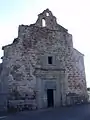 La fachada está recubierta por un enlucido sobre se pintó una simulación de sillares. En ella hay una pequeña portada de inspiración manierista. Está coronada per una espadaña de tres arcos.[3]
