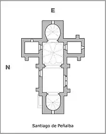 La iglesia de Santiago de Peñalba es un templo católico situado en la localidad española de Peñalba de Santiago, perteneciente al municipio de Ponferrada, en la comarca de El Bierzo, provincia de León, comunidad autónoma de Castilla y León. Se trata de una de las joyas arquitectónicas más representativas del arte mozárabe prerrománico, también considerada como parte de la arquitectura de Fusión o Leonesa.[1] Construida a comienzos del siglo X por iniciativa de San Genadio de Astorga, fue inaugurada en el año 937 por su discípulo el abad Salomón. La iglesia es el único edificio que queda en pie de un conjunto monástico hoy desaparecido.[2]