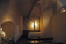 Bajo el ábside del templo actual hay una pequeña cripta con muros que ocultan enterramientos (la legislación romana prohibía enterrar cuerpos en el recinto de la ciudad). Fue cubierta con una bóveda de crucería al reconstruir la iglesia superior, constituyendo una muestra de respeto al haber, no solo conservado, sino arreglado el recinto, lo que lleva a pensar que podría tratarse de la iglesia original y realmente la primera iglesia de la ciudad de Logroño.