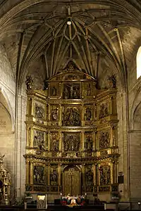 El retablo permaneció en madera limpia hasta que en 1740, Don Manuel de Samaniego y Jaca, arzobispo de Burgos lo doró y estofó corriendo con los gastos. En 2001 se baja el crucifijo del ático y se coloca en la capilla de la derecha del coro. Es un Cristo románico (s. XIII aunque posibemente pintado en el XV) con la curiosidad de tener dos llagas laterales.