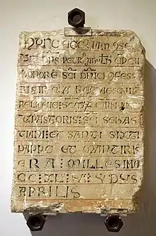 Se conserva en el Museo de Ávila una estela con la inscripción fundacional que reza:[1]